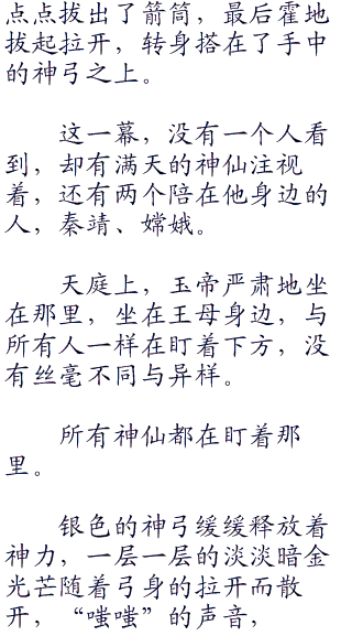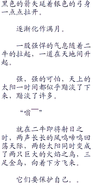 直接在射出那箭的时候烧起了火来,说到底他还是个凡人,不是之前那个后羿,不光有九天神力,还有一幅凡人中最强的身体。