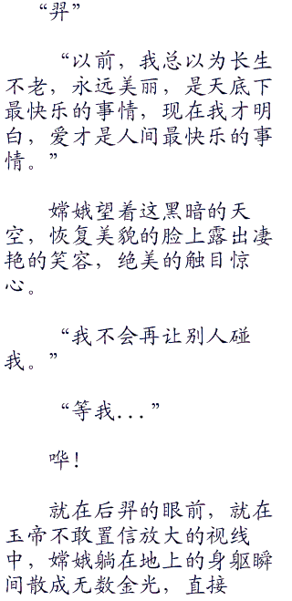 嫦娥已经感觉到了口中的一丝血腥味,但她不但没有住口,反而咬的更加用力,更加狠。