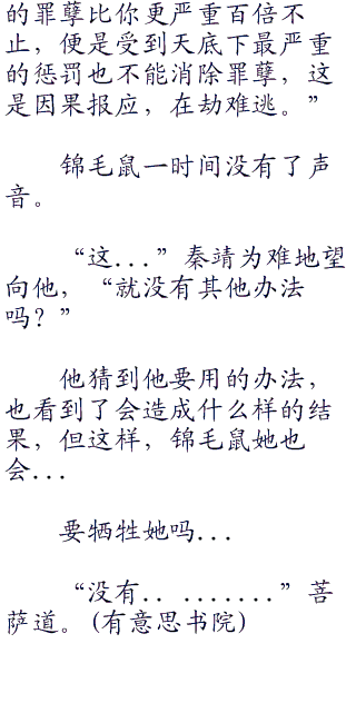 紧接着文殊转头望向众人,眼下人数众多,到也没人会怕他,只是不明白他的来意。文殊的视线落到秦靖等人脸上,转过众人,最后注视向锦毛鼠。