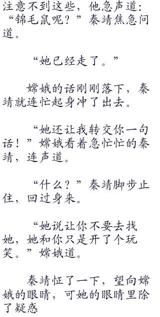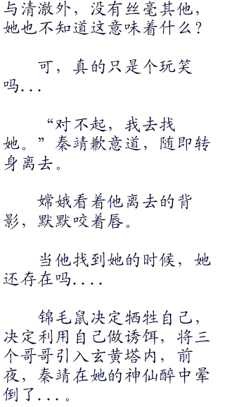 嫦娥看着站在门外的秦靖,“你还是去安慰她一下吧,别让她做傻事。”她这样真的很让人担心。