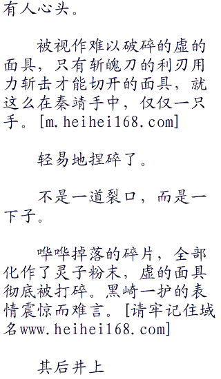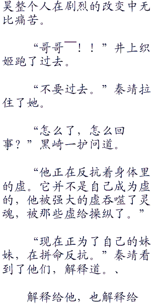 “是吗,那最好了。记住,不要忘记了,那家伙虽然是井上的哥哥,但现在是怪物,作为人类的心,他是没有的。准确无误地砍下去。”露琪亚的声音一点也没有怜悯的感觉,这种事情,她早就已经习惯了。