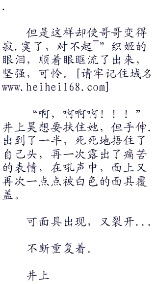 “织姬,你不记得我了吗?织姬....”怪物黑色的眼睛,望着她,那眼瞳失去了红光,显得与人类无异。