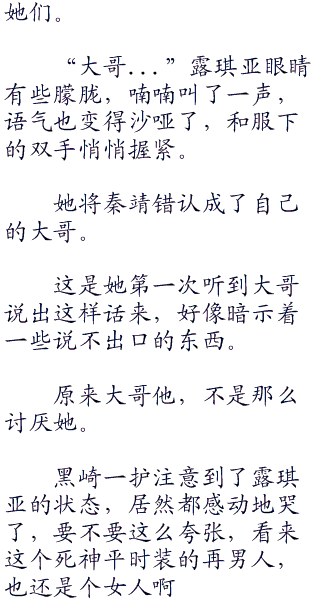 “喂,一护,振作点啊,一护!!”跑来的露琪亚蹲下身来。
