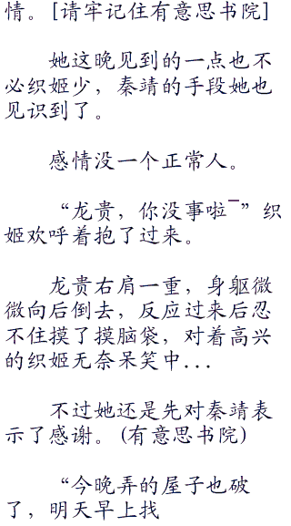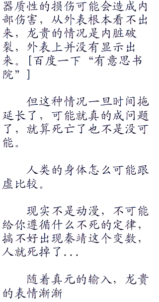 “她没事吧?”上楼的秦靖看到了躺在织姬chuang上的龙贵,她的腹部和肩膀绑着纱布,正一脸虚弱地靠在枕头上。