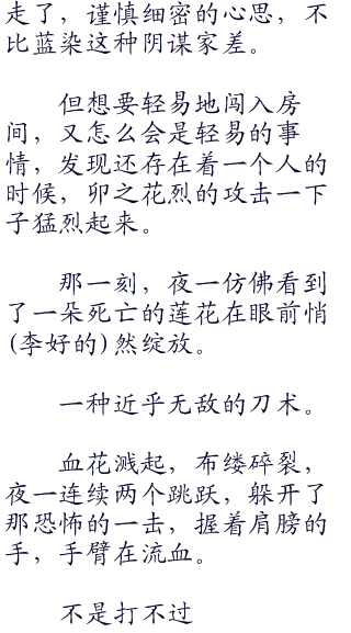 但除了刀伤外,再找不出任何破坏痕迹,只是不管多少次的检查,始终抹不去残留在她心底的那丝不对劲。
