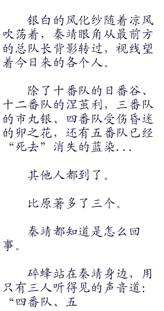 “白哉大人,时间已到,敬请前往双殛。”拉开的拉门,家族下人跪在门前弯腰低头道。