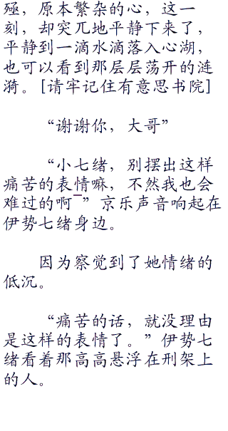 在这之前,她一直一厢情愿地认为着,大哥能够救出自己,甚至直到走出忏罪宫的那一刻,仍然是那样。