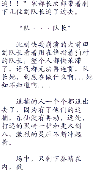 狛村左阵低头,视线在透过那木制护具的面板后,看到了那片白色的队长羽织,飞舞的发梢...