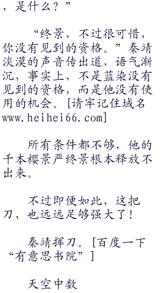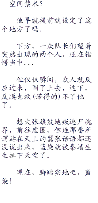 蓝染的目光望着周遭,又望向秦靖,语气中发出惊叹声:“真是相当惊人呢,这幅情景,朽木队长,你的卍解居然还有这种不可思议的变化。”