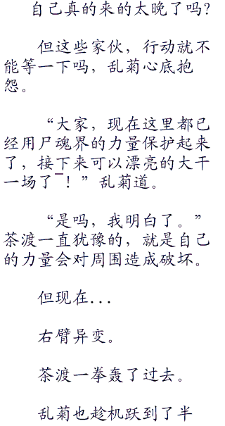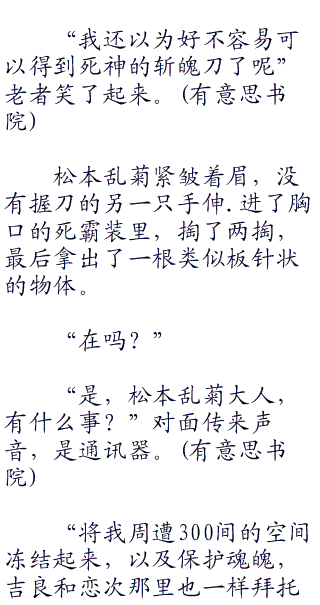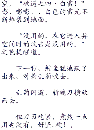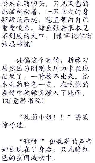 “管他是什么鱼!!喝啊~~”半空中,松本乱菊拔出了刀,对着下方即将游来的黑影直刺而下。