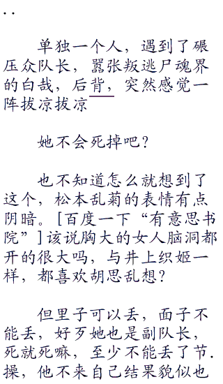 而且,居然连九十号的破道都完全没有任何咏唱,自己还根本连九十号破道都没接触到呢,那难度,光是想想都让她嘴.唇发白。