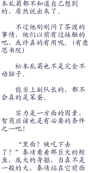 眼望着躺在地上的巨大鲸鱼,松本乱菊无法闭合的红.唇,吃惊与不信的眼神死死盯着那栽倒在地上呻.吟的大鲸鱼。