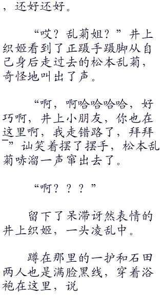 仿佛期期艾艾,又仿佛若无其事,强装镇定的乱菊在里面喊出了声音。