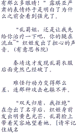 反应过来,众人连忙冲了过去,将乱菊围住,避免再次遭到袭击,“真是谢谢你,朽木队长。”虽然众人表现的慌乱了,乱菊本人却还笑的出来,毫不掩饰地感谢道。