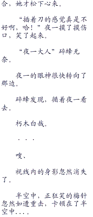 站在那全身遍布利刃的怪物对面,半蹲在地面上的夜一,腿.部的膝盖,腰部、肩头,手臂、都各刺着数枚利刃。
