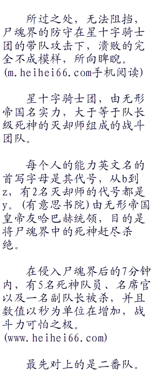 在同一时间,由另外人带领的灭却师部队同时向着尸魂界发动了进攻。
