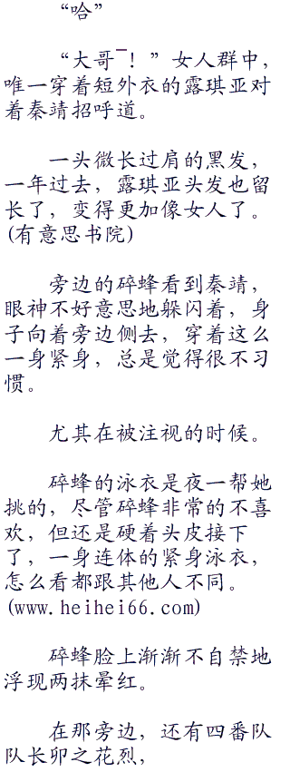 “你的泳衣也不错哦”秦靖夸赞道。