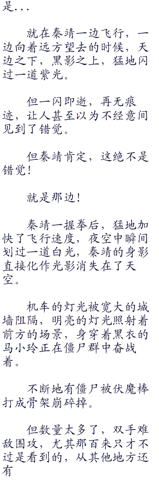 马小玲以近乎野蛮般的速度,在朱仙镇狭小的羊肠古道上生生开辟出了一“零六七”条宽敞的道路。