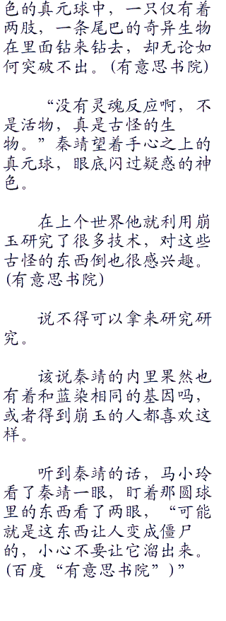 秦靖抬手,真元摄取出一只从地底溜走的‘小壁虎’,玄青