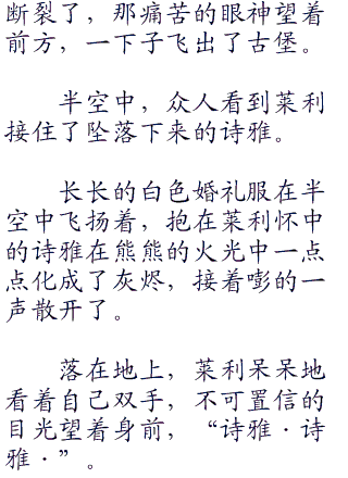 大家在高兴的莱利的带领下在古堡里转了一圈,然后莱利告辞进房间陪诗雅前,还吩咐大家尽管玩。
