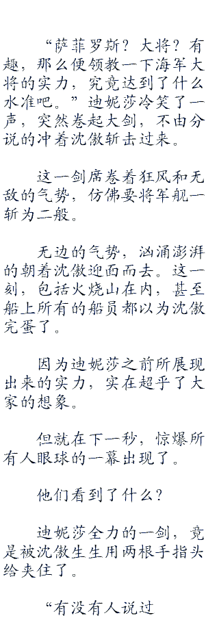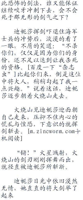 “你的诧异是理所当然的,事实上,除了海军本部的大将以及元帅空古外,其余的人我都没看在眼里。”迪妮莎荡了下手中的大剑,将剑刃上的血迹甩下,然后目光闪烁着几缕寒芒,慢悠悠的说道:“所以说啊!作为中将的你,今天遇到了我,是你的不幸。”话毕,迪妮莎身上杀意乍现。