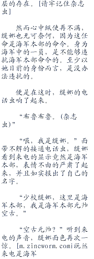 “缇娜很失望!没想到好不容易从泽法老师那毕业,却被分配到这样一处小基地担任少校。唉,也不知道斯摩格那个家伙知道了的话,会不会笑话我。”缇娜一脸惆怅的表情,自言自语的说道。