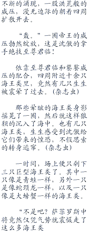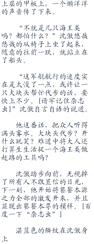 “缇娜很不高兴,甲板上这么脏,你们还不赶紧给我把甲板擦干净!”