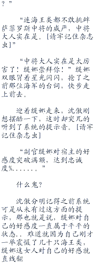 “回缇娜副官,去九蛇岛是萨菲罗斯中将的命令。”