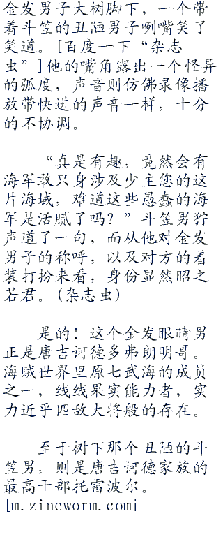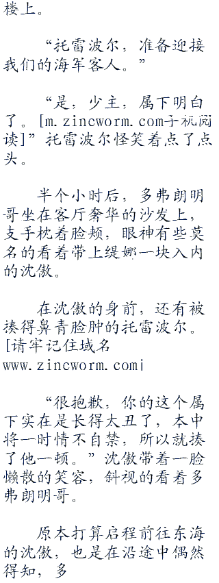 而不巧的是,在海平面的那座岛屿上,此刻一栋建筑物的顶层有着一名金发、佩戴太阳眼镜,穿着粉红羽毛大衣、尖头鞋的男子。