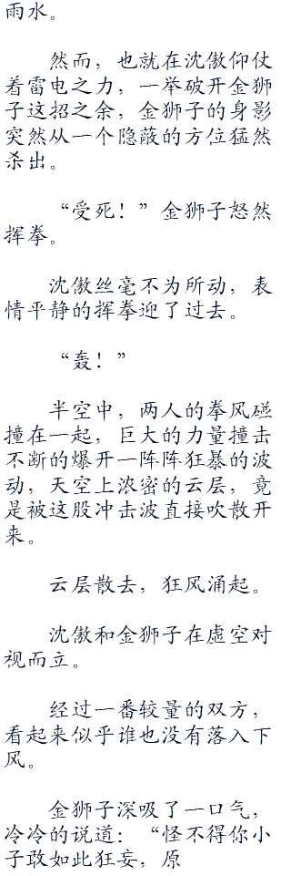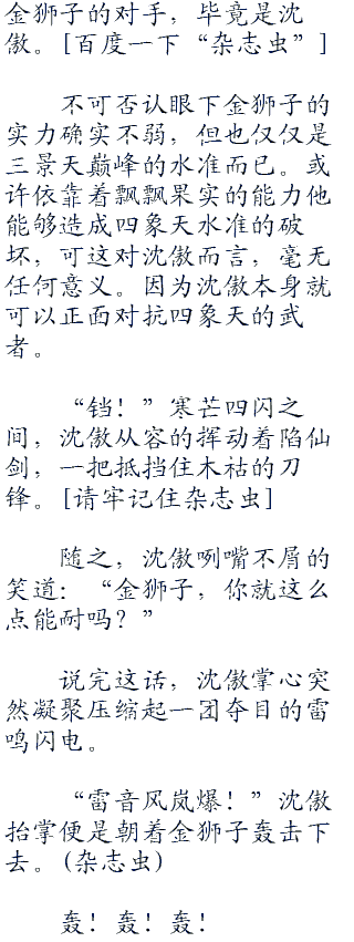 更何况,早已将天空之城视为私有之物的沈傲,也决不会再允许金狮子破坏这地方。