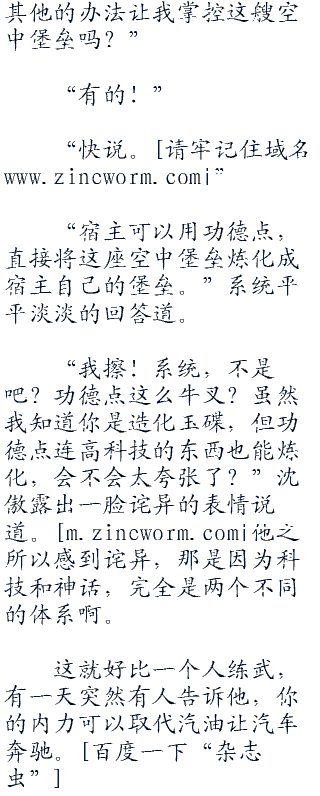 “宿主想要修补空中堡垒的控制枢纽不难,不过因为宿主没有泰坦血脉的缘故,即便修补了控制枢纽,也仍旧无法驾驶这座空中堡垒。”系统评估回答道。
