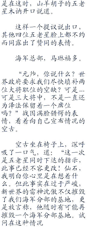 “雷神沈傲放言称,如果世界政府没能将他的悬赏金提高到五十亿,那么他就会…再摧毁掉一座海军分部基地。”