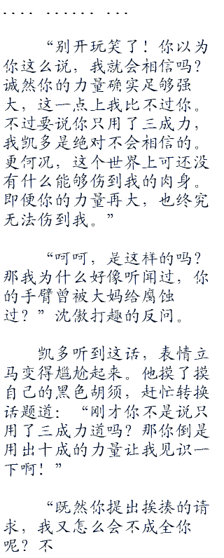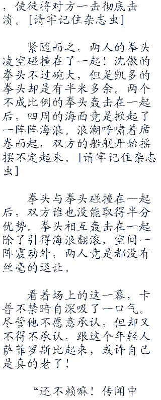 凯多看着沈傲不由分说的挥拳而来,暗自惊愕了一把。因为他还从未遇到敢跟自己正面以力搏力的家伙存在!就是连白胡子也没有把握在力量上胜过自己。