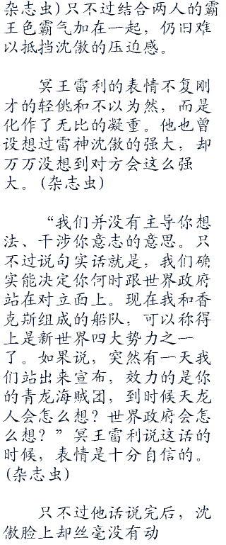 “香克斯,我不认为在这个问题上,我们需要跟他解释太多。因为我们始终是在一条船上的人,不是么?”冥王雷利十分自信的笑了笑,拿着酒壶浅尝了一口,继续说