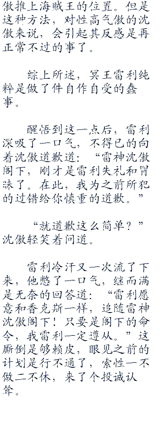 “在我削弱了世界政府的力量后,你们大可以在未来的某一天,找到一位拥有‘d’之意志的人,继续履行罗杰想要完成的理想和使命。所以,从头到尾我都只是你们计划中的一环,是吗?”沈傲目光灼灼的看着香克斯和雷利问道。