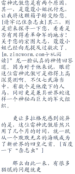 龙的名字全称可叫做蒙奇d龙,又可以称呼为多拉格龙。在面见到沈傲本人以后,他亦是十分客气的打了声招呼,笑着解释道:“本来在一个多月以前,龙就该来拜访您了。但因为近段时间革命军内部的一些原由,被耽搁了一些时日,还望您可以见谅。”