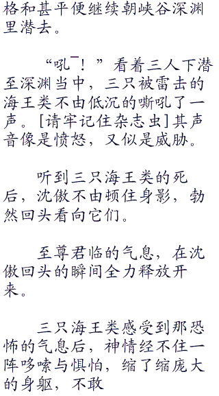 三人身影游到峡谷的深渊之内,可是没过多久,几条庞然巨大的身影就这么遁现了出来。