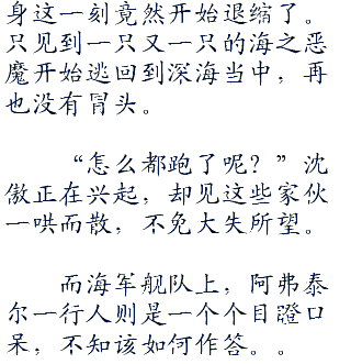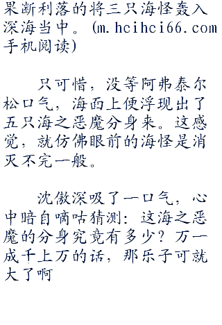 只可惜,没等阿弗泰尔松口气,海面上便浮现出了五只海之恶魔分身来。这感觉,就仿佛眼前的海怪是消灭不完一般。