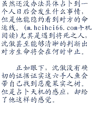 正如眼下,沈傲没确切的证据证实这六手人鱼会带自己找到恶魔果实之树。但是占卜天机的感应,却给了他这样的感觉。