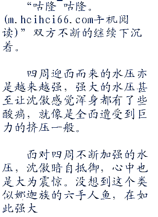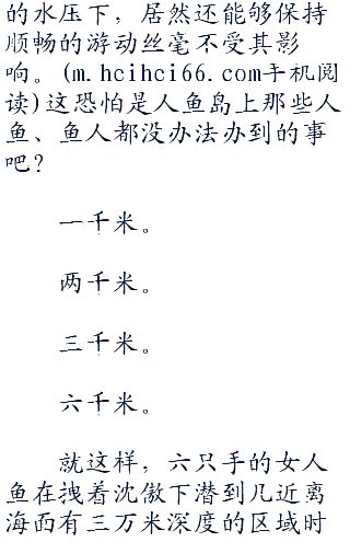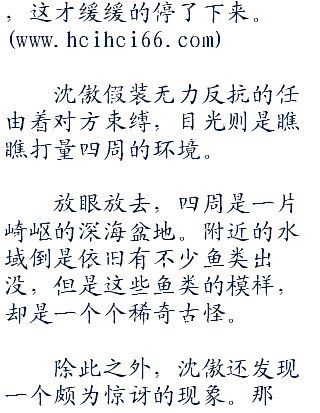 除此之外,沈傲还发现一个颇为惊讶的现象。那就是到了深海三万米的海域,居然没海王类的出没了。难道说这鬼地方连海王类都不想涉足?那么究竟是因为这里存在着某种未知的危险,还是因为眼前这只六手人鱼的缘故?