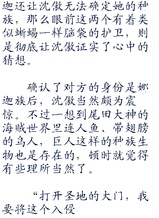 确认了对方的身份是娜迦族后,沈傲当然颇为震惊。不过一想到尾田大神的海贼世界里连人鱼、带翅膀的鸟人,巨人这样的种族生物也是存在的,顿时就觉得些理所当然了。