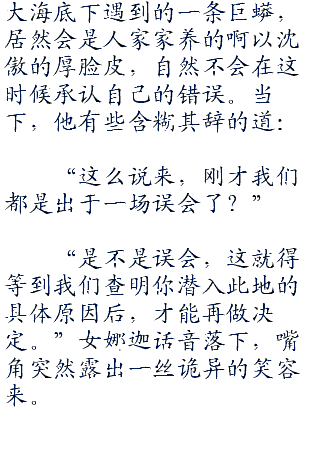 真要这么说的话,倒确实是自己不对在先了。可是谁能够想到,大海底下遇到的一条巨蟒,居然会是人家家养的啊以沈傲的厚脸皮,自然不会在这时候承认自己的错误。当下,他些含糊其辞的道: