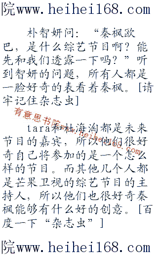 朴智妍笑着问:“秦枫欧巴,第一个嘉宾是谁啊?”