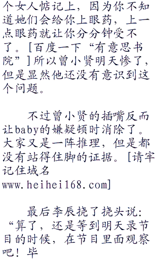 baby一脸无奈的看着其他几个人,现在大家都感觉李辰说的很有道理,顿时baby成了嫌疑最大的众矢之的。