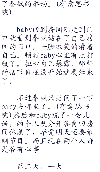 baby苦笑着说:“你们别忘了上一期,枫哥可是第一个把我给选掉的好么?”
