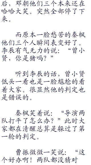 曾小贤一脸苦的说:“导演,让我再看一下咯,马上就全记住了!”当然导演并不理会曾小贤的哀求。