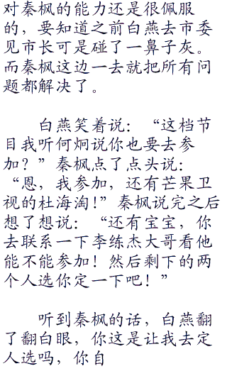 秦枫说的她们都知道,但是对于秦雪儿参加《变形计》的事,baby她们还是一脸的担心。放心不下。