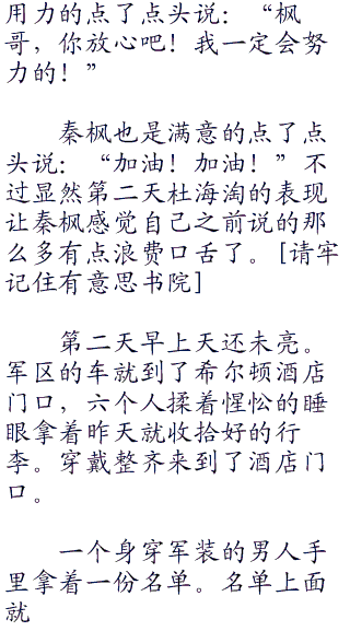 白燕点了点头说:“嗯,我明天就去安排!”听到白燕的话,秦枫点了点头。