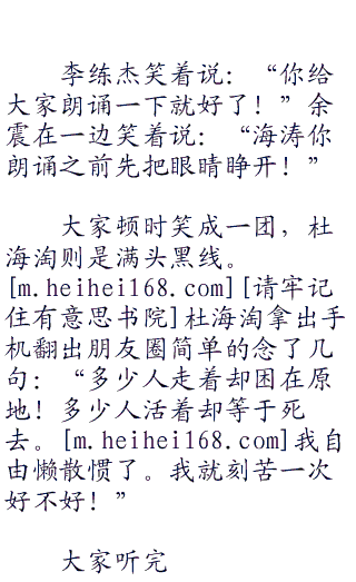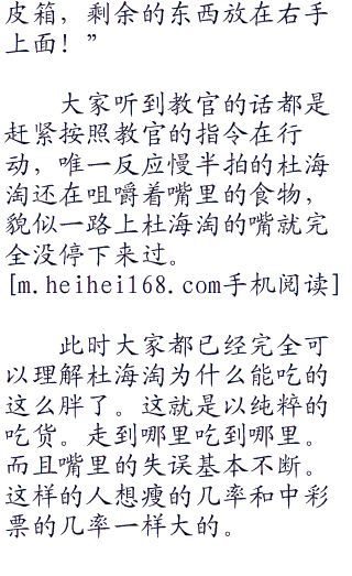 杜海淘从酒店里面走出来的时候嘴里还在不停的咀嚼着没有咽下去的食物,看着杜海淘的样子大家都是一阵无语。
