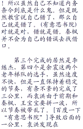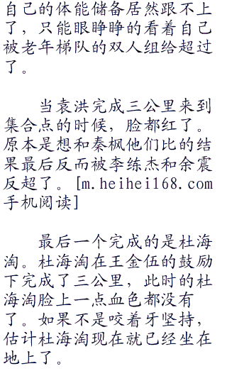 尼玛,此时杜海淘心里万头草泥马奔腾而过,都要哭了。这三公里都已经让杜海淘跑得想死了,现在你还要再加五圈。你一剑杀了我吧!